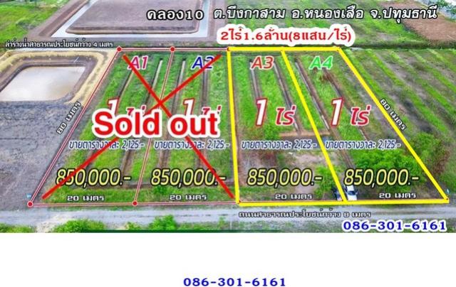 ชื่อโครงการ : ที่ดินถูก คลอง10หนองเสือ ปทุมธานี ใกล้กับ อำเภอหนองเสือ ถนนคลอง10ตะวันตก