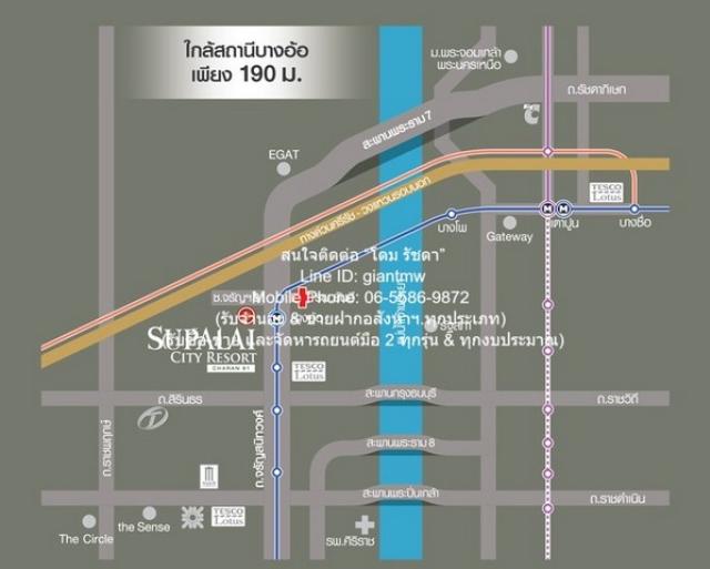 ที่ตั้ง : ศุภาลัย ซิตี้ รีสอร์ท จรัญฯ 91 ใกล้กับ MRT บางอ้อ และอยู่ตรงข้าม ร.พ.ยันฮี