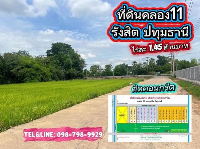ชื่อโครงการ : ที่ดินคลอง11 รังสิต ใกล้กับ ตลาดเจริญกัลป์ 2.4 กม.