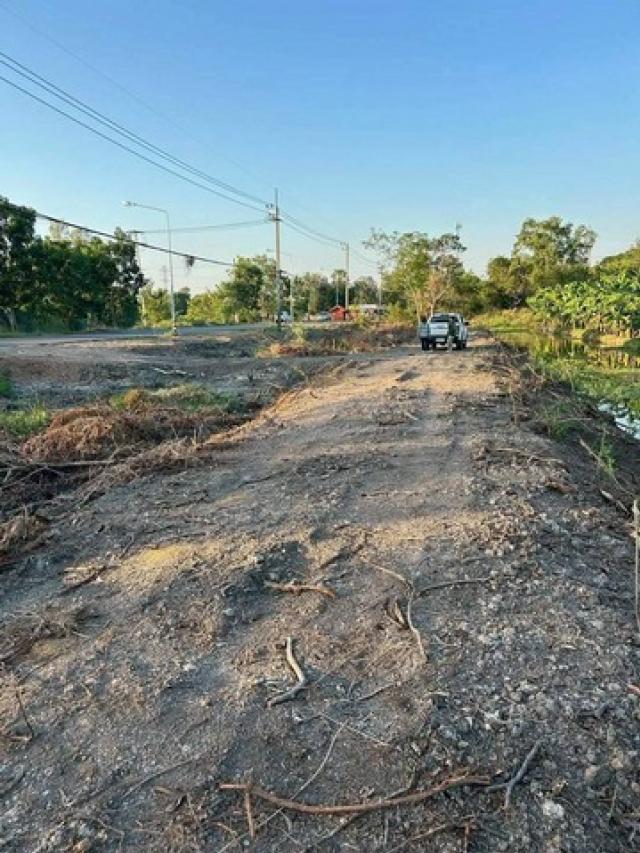ขาย ที่ดินเปล่า ติดถนนใหญ่ ใกล้ขนส่ง เหมาะสำหรับทำสถานีพักรถ สถานีชาร์จรถไฟฟ้า คาเฟ่ ตลาด บรรยากาศริมคลอง ไม่มีปัญหาน้ำท่วม
