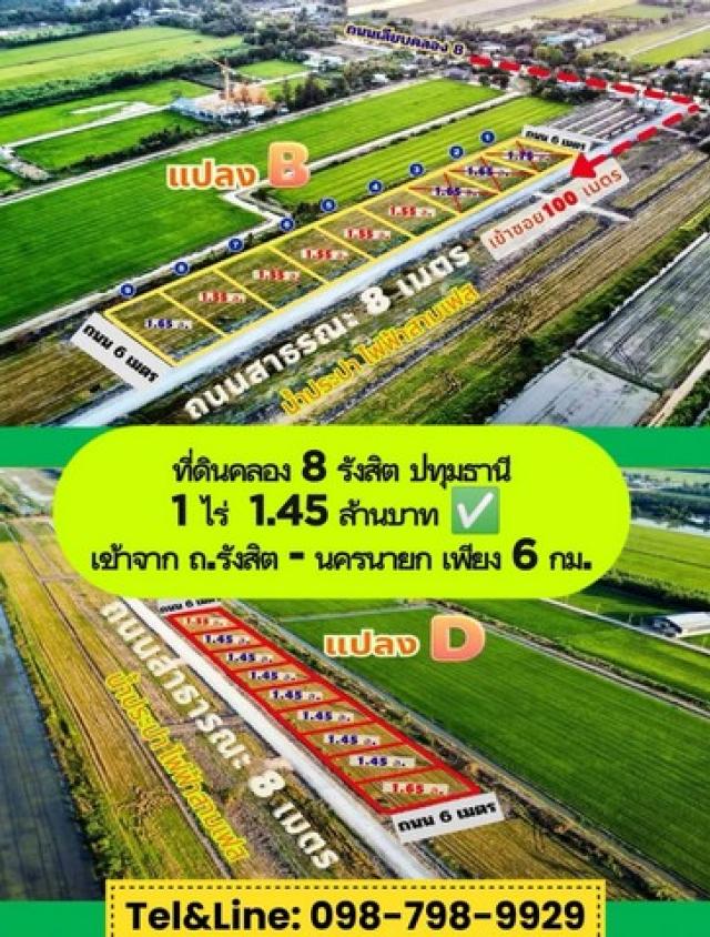 ที่ตั้ง : ที่ดินคลอง8 ใกล้กับ รร.วัดพวงแก้ว 850 เมตร